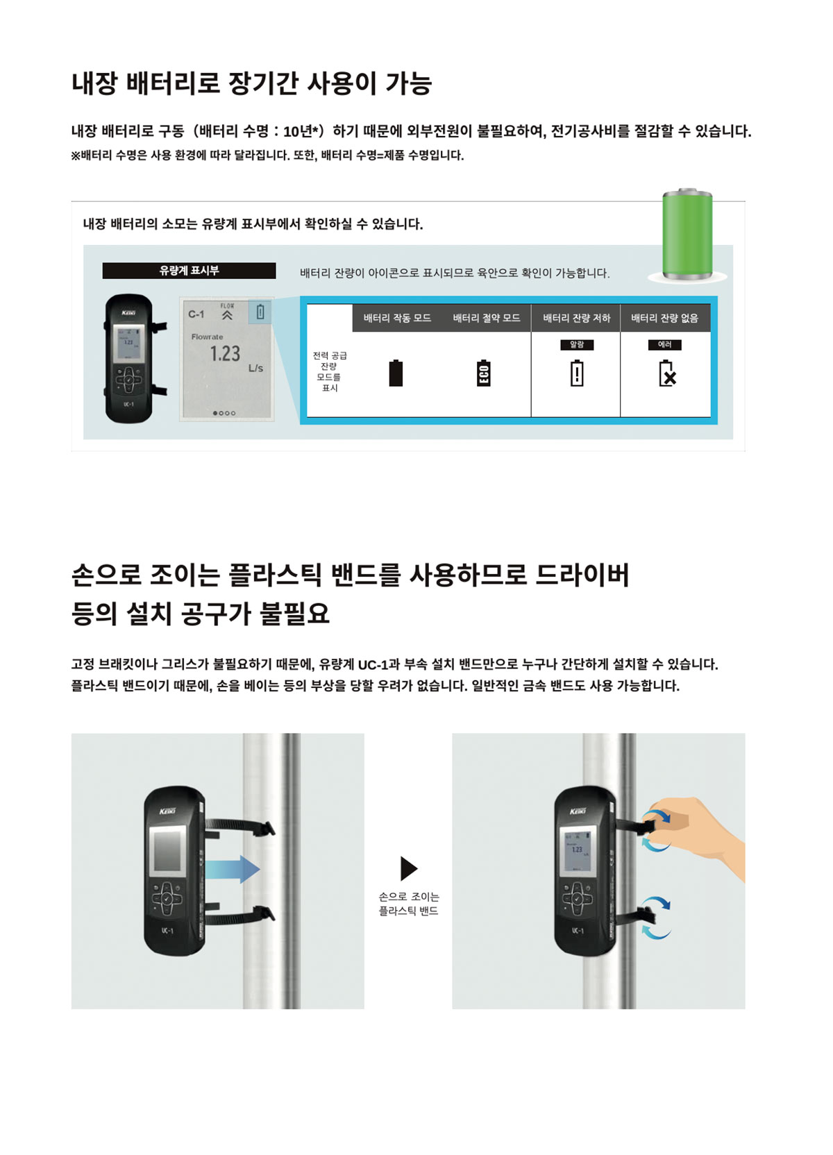 | 데이터 표시 | 유량, 유속, 에너지 측정 가능 | |||