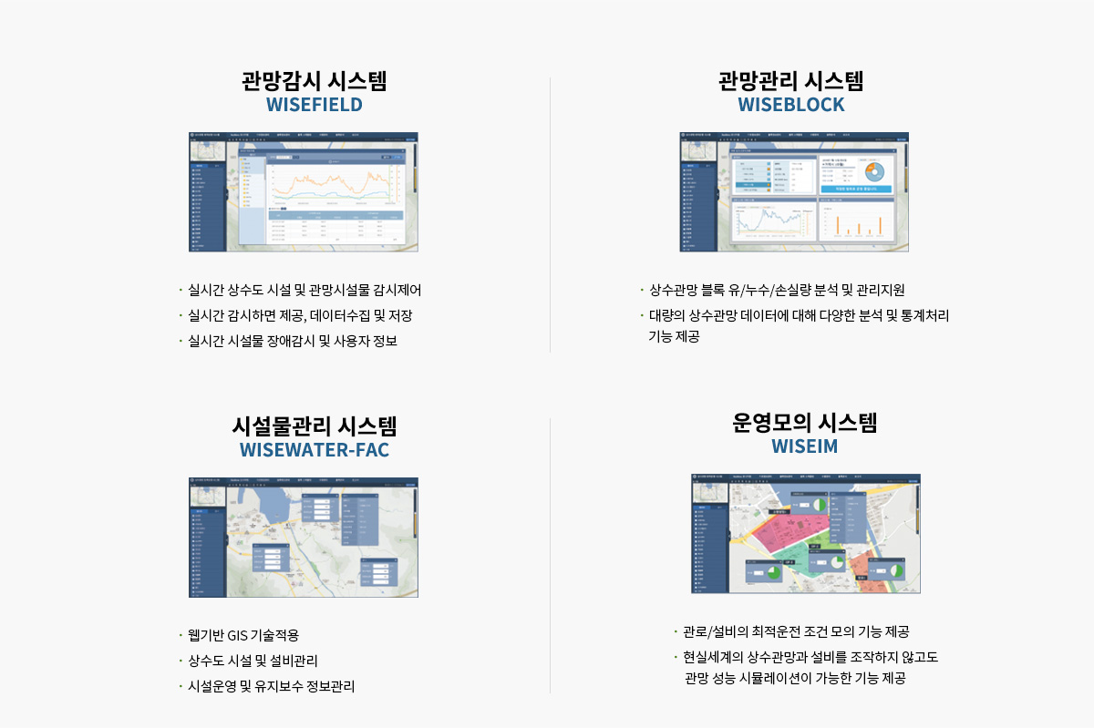 (주)신성미네랄의 WISEWATER-MAN Series는 다년간 환경부, 한국환경공단, 한국수자원공사, 지자체의 주요 상하수도 정보화 시스템을 연구개발, 구축, 운영경험을 보유한 전문가들의 노하우를 집약시켜 개발한 시스템입니다.